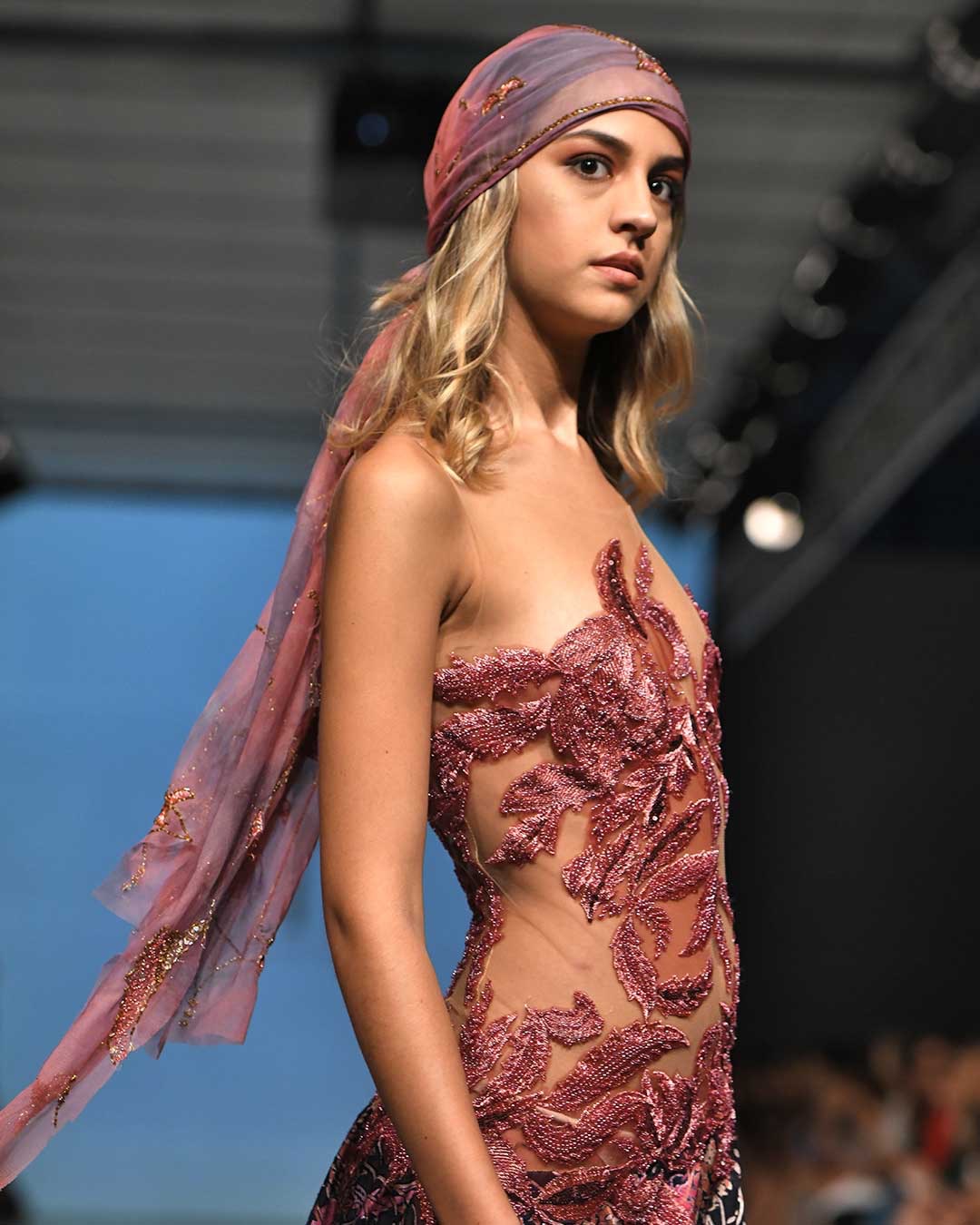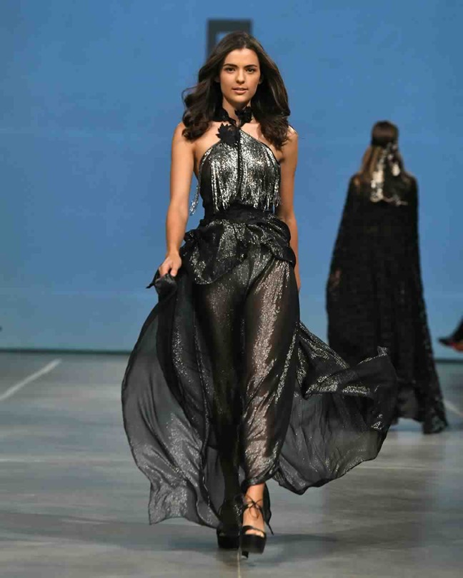 La colección contó una variedad de cortes, estilos y tonos que van de los blancos, pasteles y amarronados. Así como con estampados y detalles propios de la cultura. La presentación fluyó como la arena del desierto, remontándonos a las dunas, calidez y belleza de la Región.