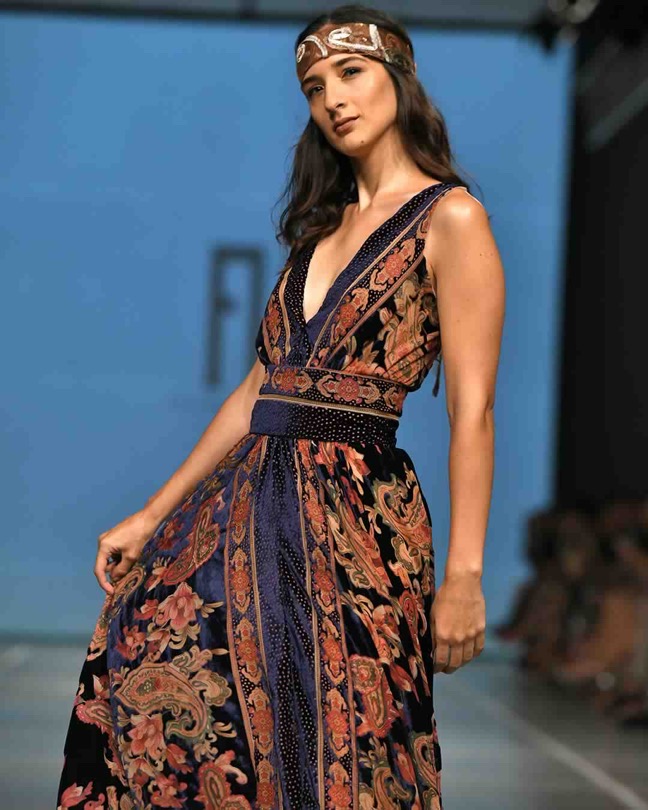 Con bellas siluetas, excelentes bordados y estampados; esta colección cautivó al público. Estuvo inspirada en la onda “hippie” de los años ochenta, con mucha fluidez cada una de las hermosas modelos desfilaron y decantaron elegancia por toda la pasarela del Museo de Arte Contemporáneo de Lima.
