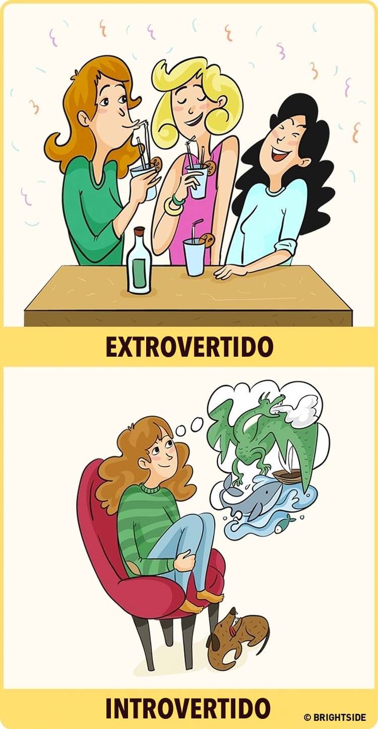 Algunas personas tienen la idea errónea de que los extrovertidos son divertidos y los introvertidos aburridos, no pueden estar más equivocados. La persona extrovertida es aquella que se diferencia por ser muy sociable y gustarle ser el centro de la atención, es aquella que disfruta expresarse y compartir sus ideas les hace felices. Mientras que las introvertidas disfrutan de la privacidad y el divertirse, pero en un grupo más íntimo y cerrado, les gusta tener tiempo para sí mismos y no ser el centro de la atención.