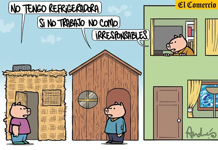 Hace unos días vi una caricatura [abajo] de un conocido caricaturista publicada en el diario El Comercio, y no pude evitar sentirme identificado. En la imagen podemos apreciar la realidad que se vive en estas últimas semanas en mi país [Perú]. Las personas que cuentan con los recursos de sobra para sobrellevar esta crisis, asíSigue leyendo «Los tres cerditos blanquirrojos»
